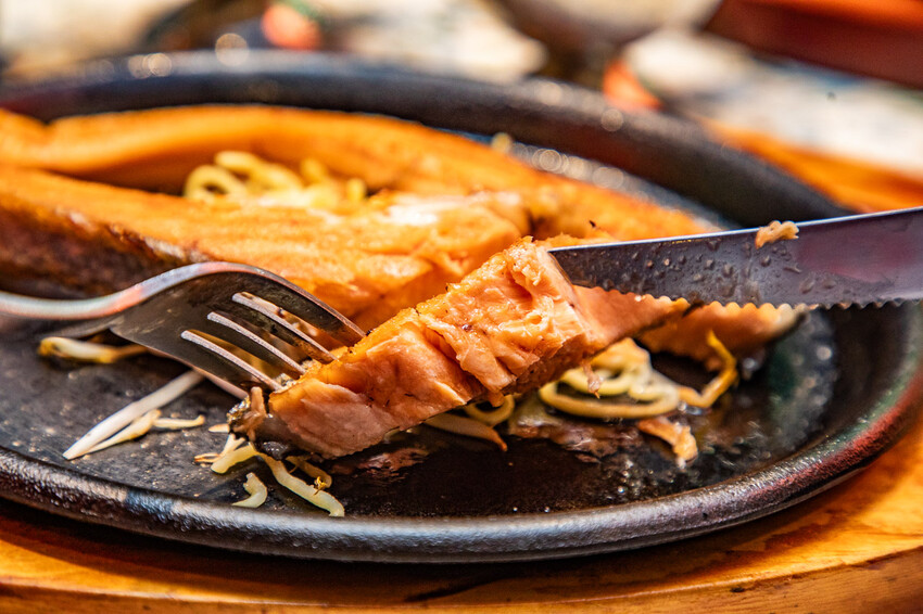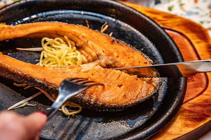 檸檬鮭魚排,鮭魚排也是份量很足超厚一片,鮭魚排魚皮煎的脆脆的,搭配厚實且細緻肉質不乾柴的鮭魚及淡淡的檸檬香氣,鮮甜可口又清爽,好吃