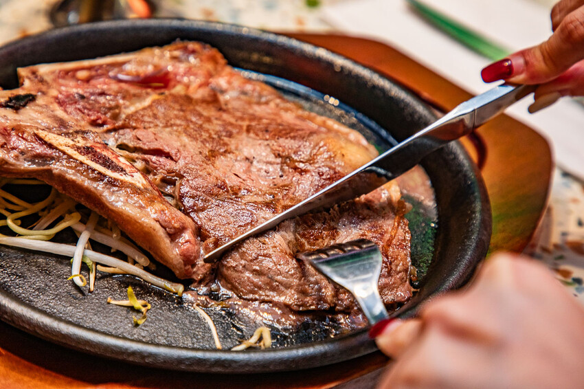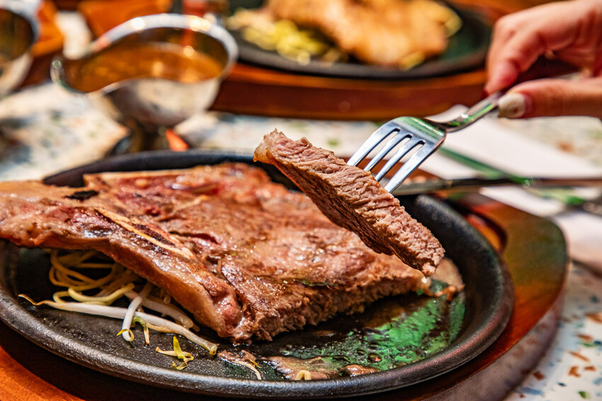 CAB安格斯牛(丁骨牛排),愛吃肉的朋友可以點這個丁骨牛排,牛排份量超大!丁骨牛排讓你品嚐菲力與紐約客的完美結合,細嫩中帶有粗曠的嚼勁,點一塊可以有兩種風味口感,頗讚!