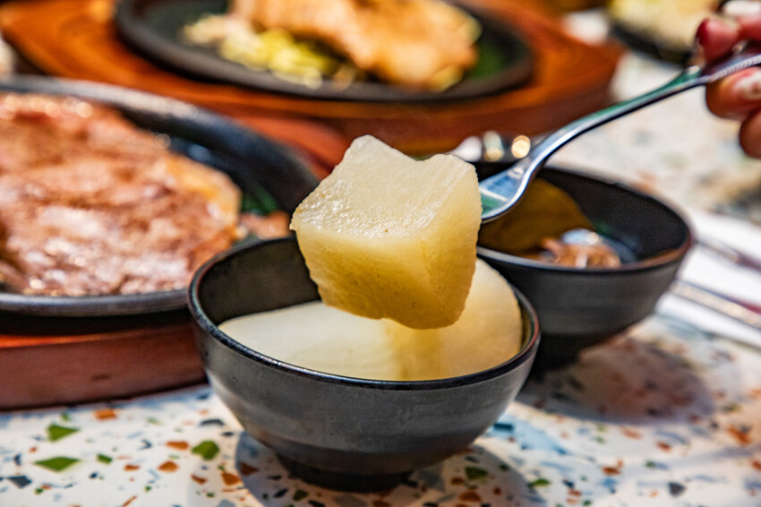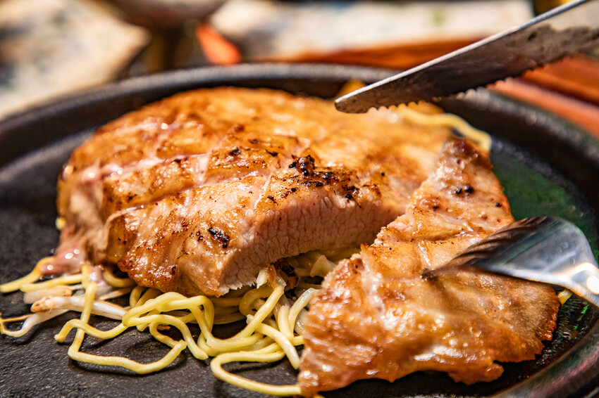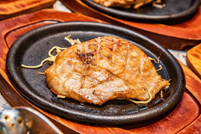 極上松阪豬排,不吃牛的好選擇,一般都只吃過燒肉店那種薄片的,很少有直接給一大塊松阪豬排!松阪豬肉質清甜,口感軟嫰又爽脆,松阪豬本身油脂就清爽,搭配一點鹽讓入口的口感香氣更加厚實