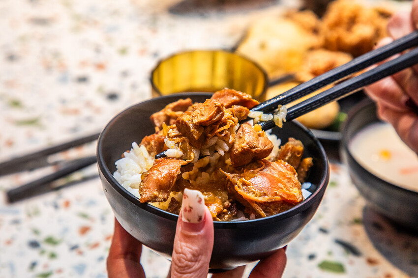 滷肉飯、咖哩雞、藥燉排骨無限量供應,這裡的咖哩雞有夠強,裡面的雞肉超嫩,根本可以直接原地出道光賣咖哩雞都可以!