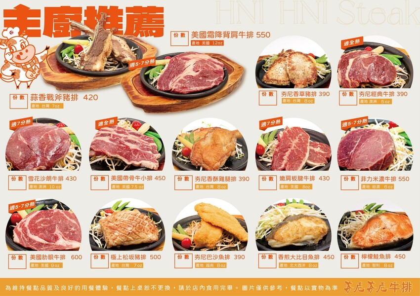 夯尼夯尼牛排百匯桃園愛買店|菜單