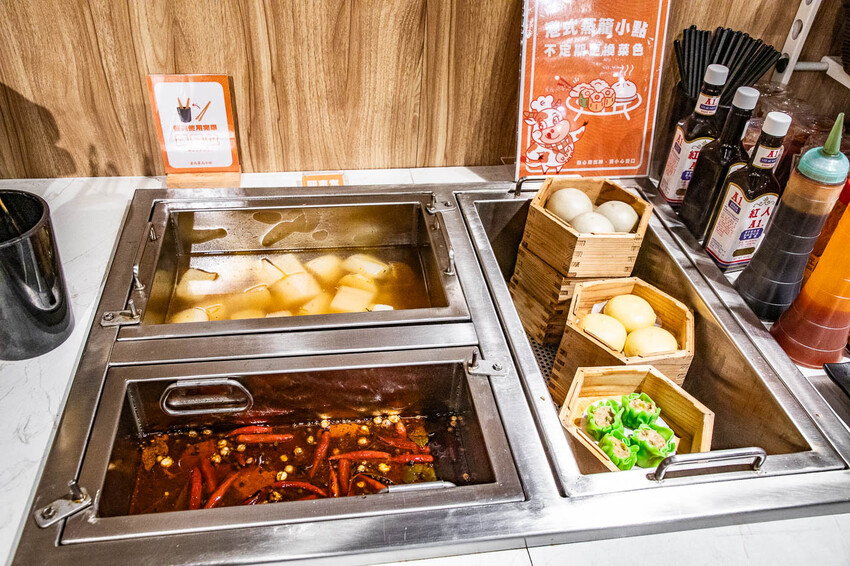 港點區、關東煮跟麻辣鴨血,港點有燒賣、流沙包等蒸籠港點,品項蠻多的,我很推薦他們的關東煮跟麻辣鴨血,關東煮的白蘿蔔超水嫩又入味,麻辣鴨血基本上已經是單點麻辣鍋等級,超好吃!