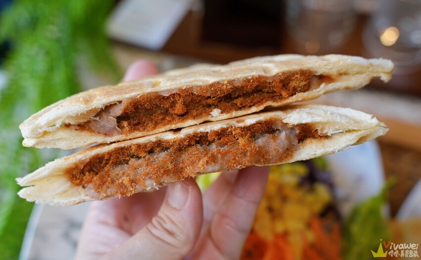 ▲芋泥和肉鬆大約是1:1的比例,芋泥的甜味搭配肉鬆的鹹味,鹹鹹甜甜的組合就是讓人難以抗拒!也是芋頭控的最愛啦!