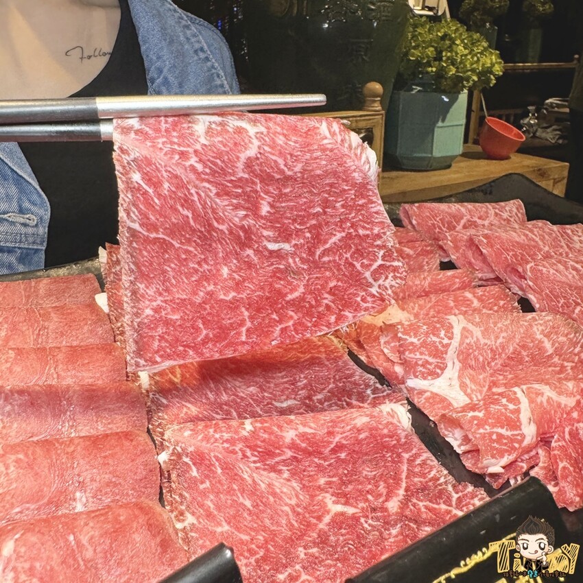 日本鹿兒島A5雪花和牛建議涮3分熟帶粉嫩色澤,有入口即化的口感