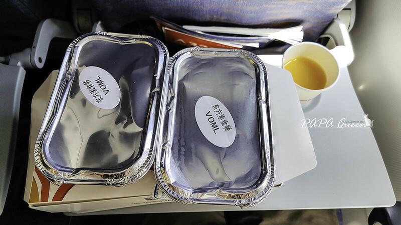 大盒: 水果/麵包/甜點/一份黑木耳,鋁箔:白飯跟配菜(各種瓜),機上的飲料我選了果汁,後來大貓追加了一杯咖啡送來的是三合一(甜)