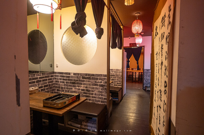往二樓走就變成燈光比較昏暗的古代妓院風格,裝潢頗具特色。二樓主要以包廂的空間為主,有