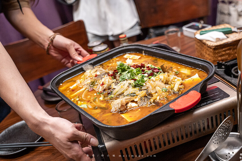 這烤魚裡還有凍豆腐跟一些蔬菜,品嚐完烤魚後底下的湯汁還能拿來當火鍋湯底,再加點其他火鍋配料就是重慶火鍋的另外一種吃法。