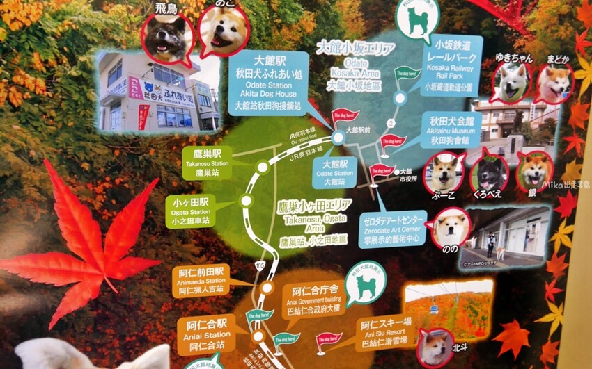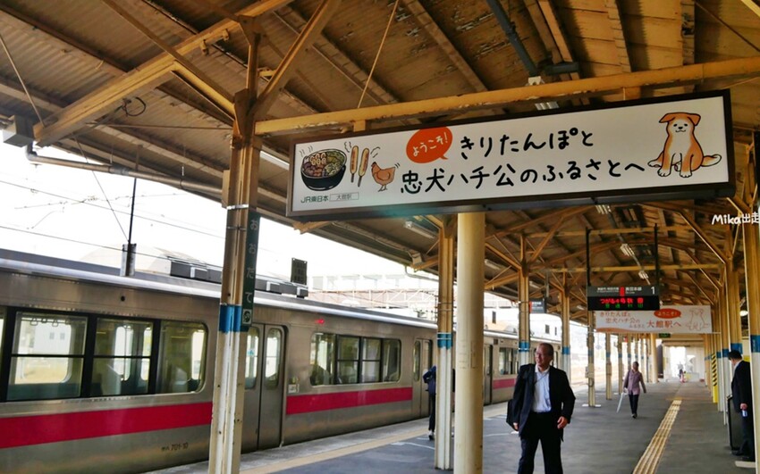 大館市位於秋田縣北部,不僅是忠犬八公的故鄉,也是秋田犬的發源地。在車站月台就看到歡迎來到米棒和忠犬八公的故鄉,以及八公神社、秋田犬相關的海報,根本就是狗狗控的城市。