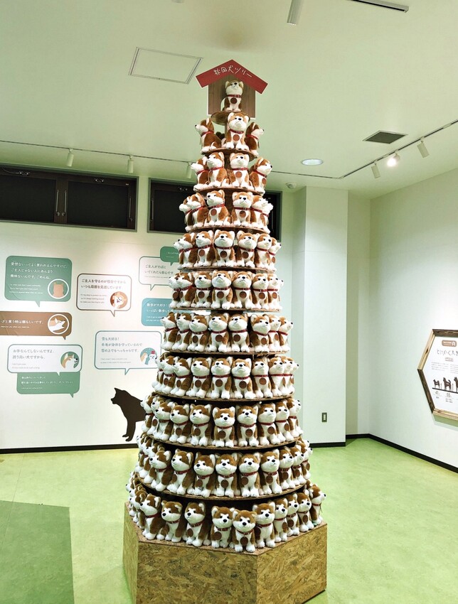 裡面有一個大家喜愛的拍照點,那就是使用160個以上可愛秋田犬絨毛玩具打造,高到天花板的秋田犬絨毛玩具樹,這是以花式溜冰金牌得主扎吉托娃選手的愛犬「Masaru」為形象製成的玩偶。這裡還有各式各樣可愛的秋田犬造型商品,是挑選紀念品的最佳場所!