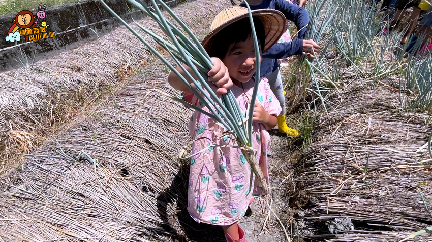 馬上來下田拔蔥體驗啦,小朋友自己拔起來超有成就的,每個人建議拔兩個就好了,因為後面要洗蔥,拔太多會洗不完,其實蠻好拔的,不會說像拔草一樣需要用盡全身力氣才能連根拔起。