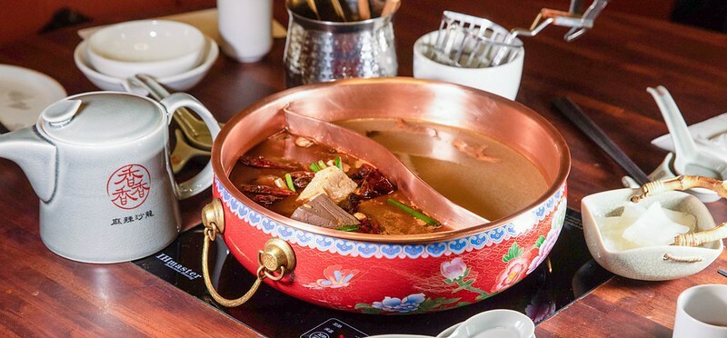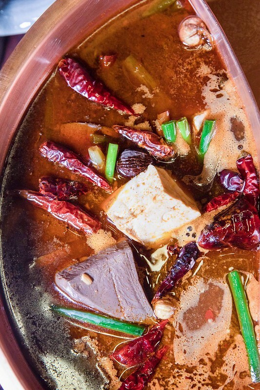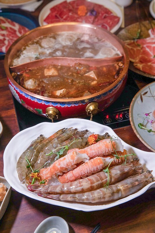 火鍋湯底有「老靈魂川味麻辣湯」和「花膠蛤蜊蘆花雞湯」紅白各一,鍋子紅的討喜、銅的氣派,算是相當講究。