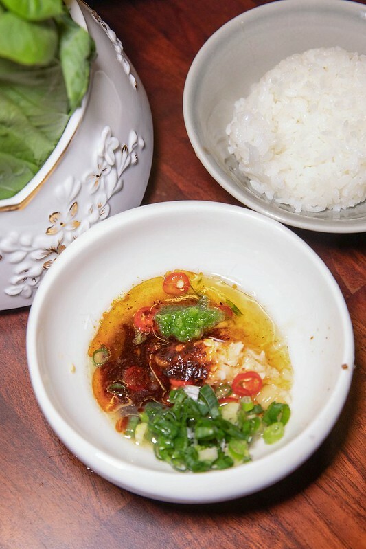 店裡的沾醬也不馬虎,尤其是辣油滿滿的花椒麻,個人超愛的。附帶說一下的是店裡的飯也很好吃,後來主廚說是量很少的台東147香米混139白米。