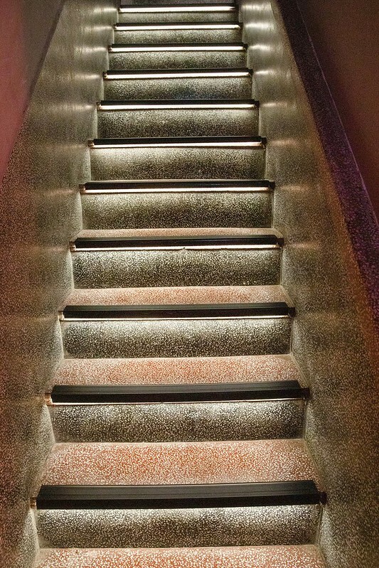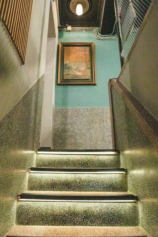 一轉身,濃濃時尚味瞬間即消,取而代之的是淡淡轉強的老宅,這磨石樓梯燈打得好,正是我說的「漸漸」二字的視覺效果。