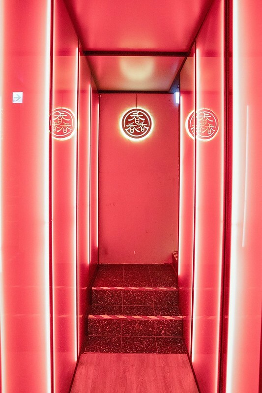 這一樓往二樓的門很特別,紅到我懷疑是不是要去一間高級bar....還是要交100萬才能進去的私人會所之類的....總之,我猜一萬次也不會猜是「火鍋」店。