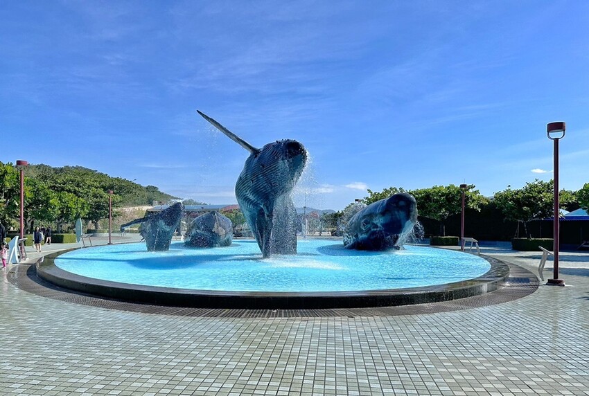 掃門票準備走進海生館,會在入口處看到太平洋親水廣場、星巴克以及鯨魚親水廣場,一年四季來這,真的會看到不少小朋友在鯨魚親水廣場這戲水,就連我們家的蔬果姐妹也是硬要脫鞋去泡腳一下!當然大家都會在鯨魚親水廣場這拍照留下好美好的紀念照。