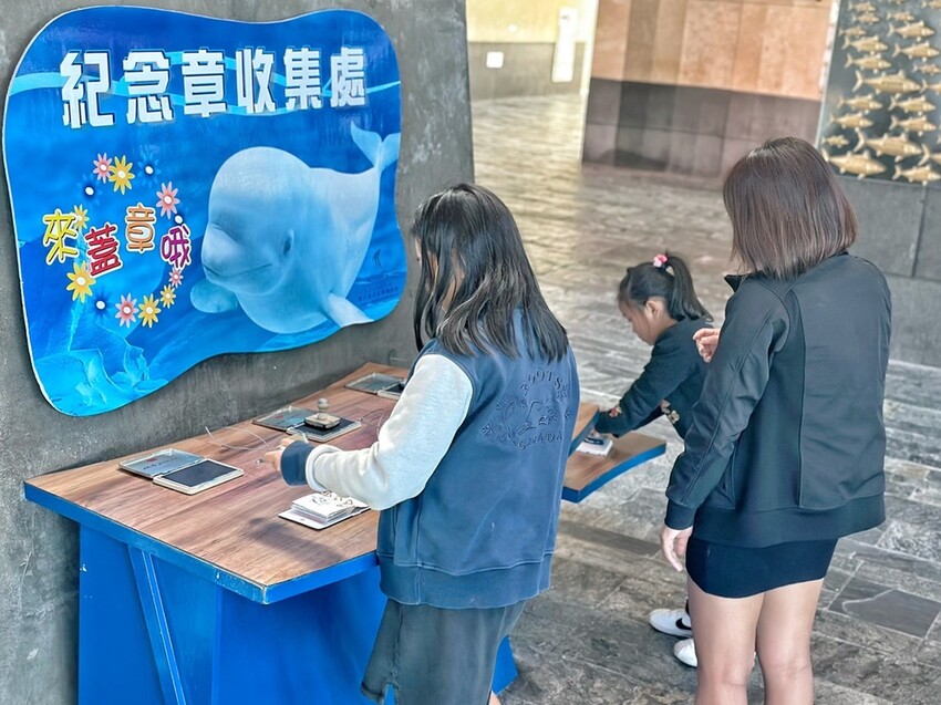 走進海生館的大廳時,若有在蒐集戳章的朋友,大廳這也可以蓋章喔!每個戳章都好可愛,蔬果姐妹都蓋得很開心!
