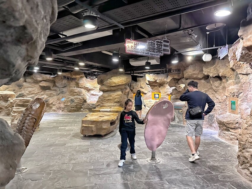 像是走進古代海洋,這會有3D影片可欣賞,透過大銀幕,真實展現在觀眾面前,蔬果姐妹就看得很認真很投入!