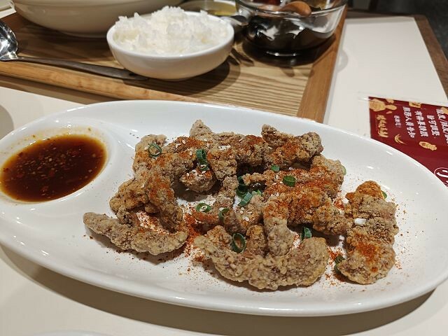 這道「椒麻小酥肉」也是店裡必點的招牌,外皮酥脆,內層則是香嫩多汁的豬腿肉,灑上椒麻粉,或沾上辣醬,提升美味的層次,另外也可以浸泡在酸辣魚湯裡,酸辣的口感呈現不一樣的美味。