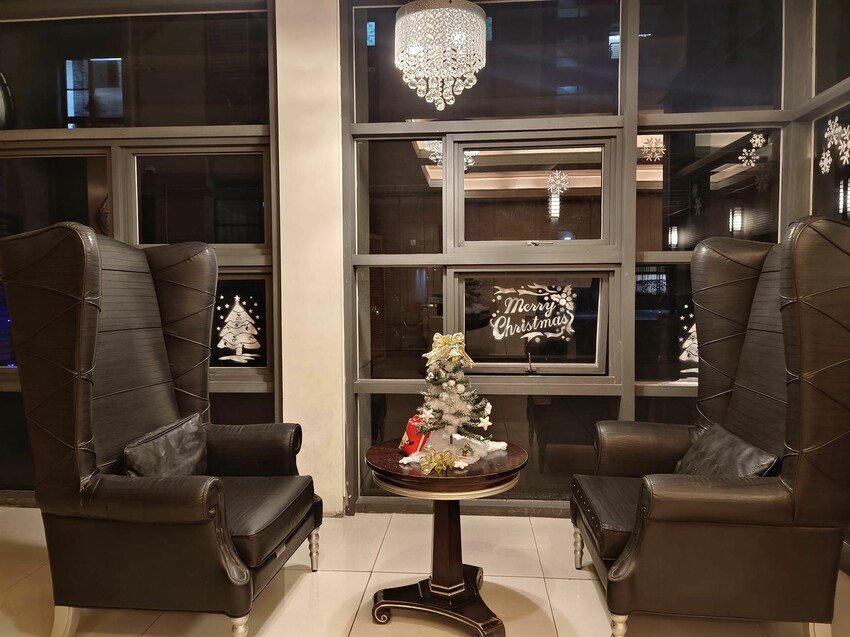 沒想到社區一樓大廳也被布置成這麼有過節氣氛的模樣
