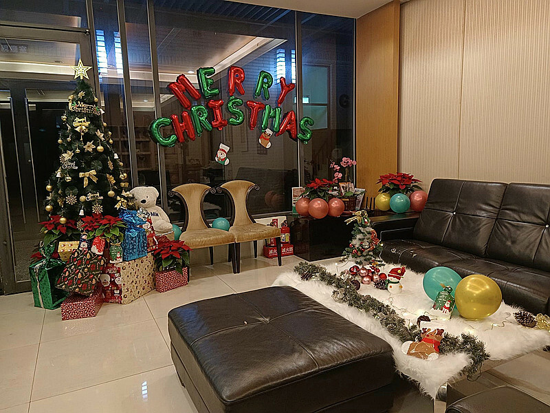 以前都只在社區大樓外面裝飾聖誕樹