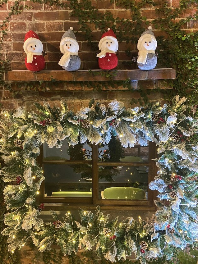 連窗戶上都有好幾隻小雪人,還搭配著牆上的爬山虎,猶如置身童話場景