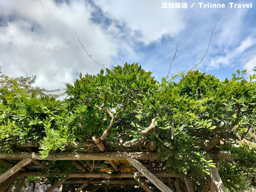 一進來就能看到攀滿白籐的走廊,雖然不是開花季但呈現出的是綠蔭盎然的生機