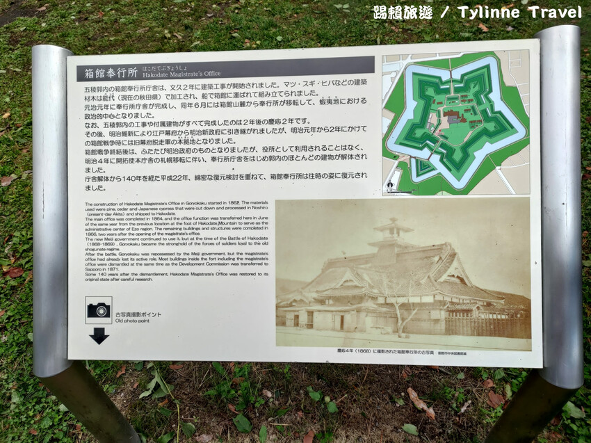 「箱館奉行所」是位在整座五稜郭公園的中間,也是一座見證歷史故事的建築