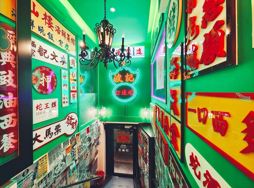 ▼內部裝潢設計也帶入濃濃港味像是綠色牆面、霓虹元素,即使沒去過香港,都能從空間內感受老香港。