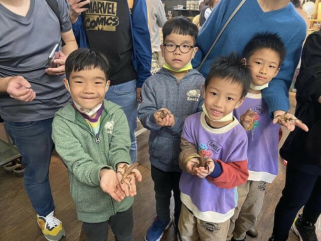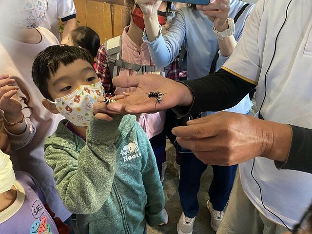導覽人員拿出來給大家觸摸體驗的昆蟲都是沒有毒性的,所以可以放心摸沒有問題。倒是有一個昆蟲「海蟑螂」許多遊客聽到都不敢摸了!我們家的佑佑很淡定地拿在手上。