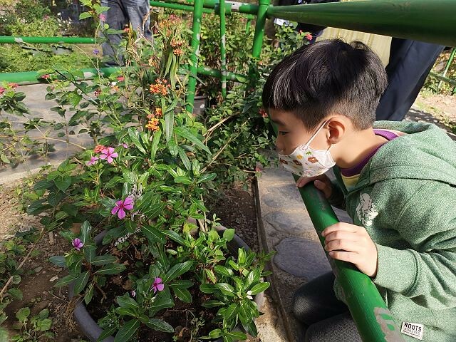 首先是先參觀蝴蝶園區,認識蝴蝶的生長過程,就以毛毛蟲為開場。