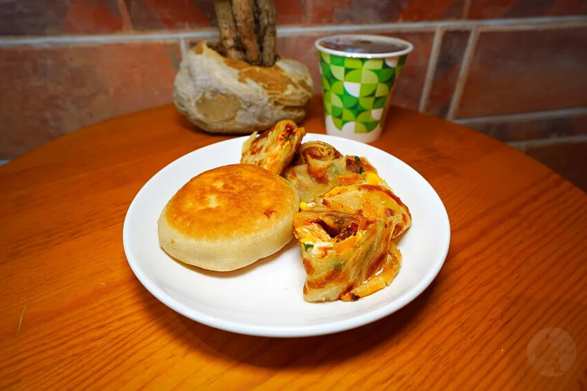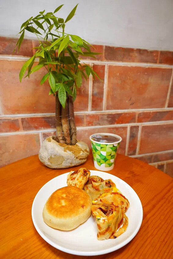 如果你續住在「壹樓文旅」的話,他們會提供早餐喔!而這早餐可是闆娘一大早親自去排隊買的當地美食喔!就像我們第二天吃到的金喜園的豬肉餡餅與蛋餅,真的超好吃的啦!而且份量還特別大,吃了早餐真的感覺超滿足的!