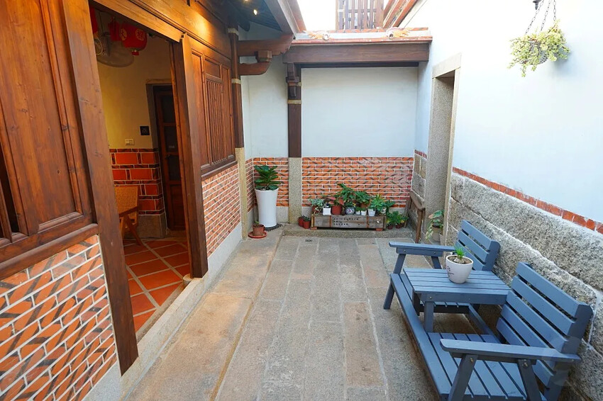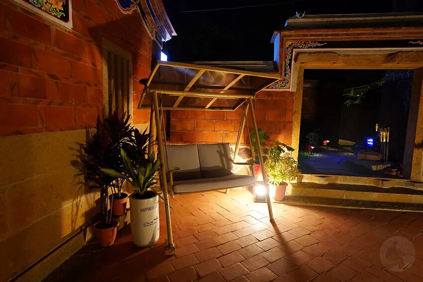 民宿大門前有一片開闊的空地,感覺以前小朋友總是在這裡和鄰居的朋友們嬉戲玩耍。現在有了的加持,大門前擺了幾盆翠綠的植物,還有一個可愛的盪鞦韆,營造出一種清幽又溫馨的感覺!