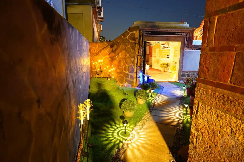 大廳一旁有條小路可以走進去,然後你就會發現一個超美的室外中庭!晚上特別悠閒,你和旅伴還可以在這裡喝杯茶、聊個天,感覺真的超棒喔!