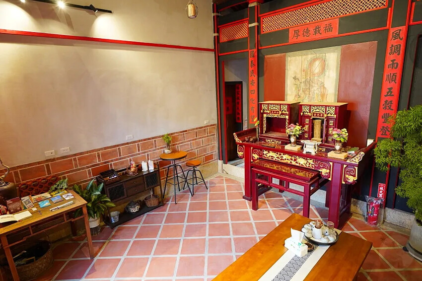 在大廳裡頭,還能見到保留著原屋主的神主牌,就像阿公阿嬤家的公媽廳一樣!這就是這古厝的獨特之處啦。當然,有些人或許會有點在意,但我們以尊重心情看待就可以了。