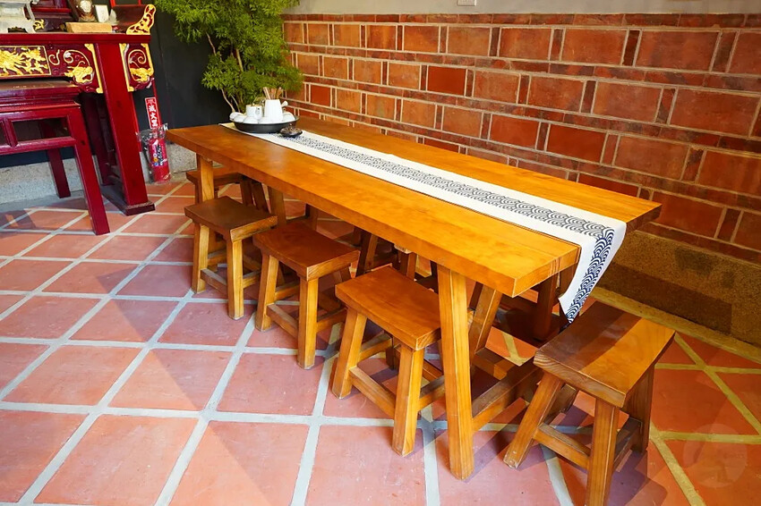 大廳裡擺放了一張原木桌椅,供客人使用,真的是個很棒的地方!在這裡泡杯茶、聊天,甚至是小酌都是很不錯的選擇。旅咖這次住了三天兩夜,所以都會來這邊坐著休息發呆!而且,總能嗅到一陣陣的香氣,想必是闆娘點的沉香吧!坐在這裡真的感覺可以靜心沉澱一下,超舒服的!