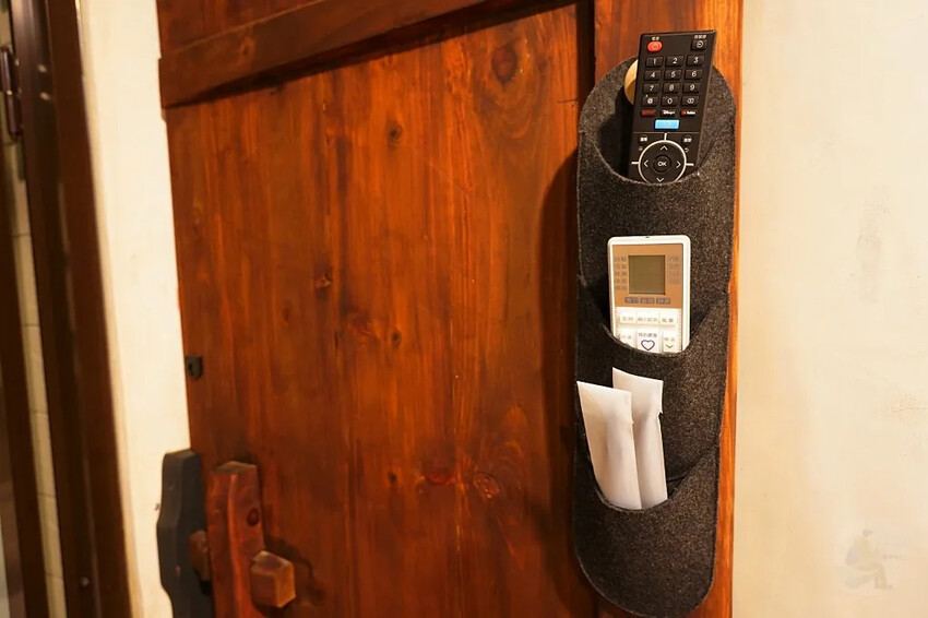 冷氣和電視的遙控器都貼心地收納在側門的小袋裡,連牙刷也在這呢。一開始我還找不到牙刷,不過我通常都有自己帶牙刷啦!!