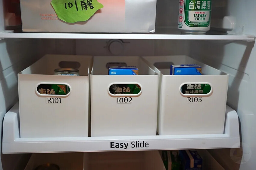 因為房間沒有提供冰箱,如果需要使用冰箱,可以使用茶水區的冰箱喔!而且,民宿提供的飲料也都很貼心地按照房型分類好,都放在冰箱裡面了。真是方便極了!