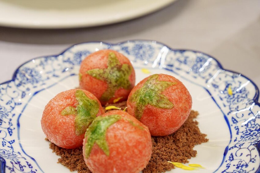 可愛番茄外型裡面是包有菜脯米,Q彈糯米製成的番茄外型特別吸睛