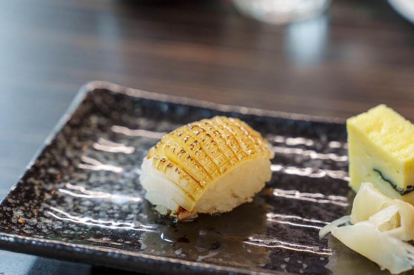 軟絲握壽司鮮甜Q彈,好想把朋友的那一顆也吃掉!!