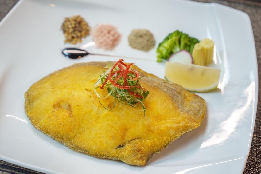 大比目魚 扁鱈一上桌煎的雙面金黃色,一整片扁鱈份量相當有誠意