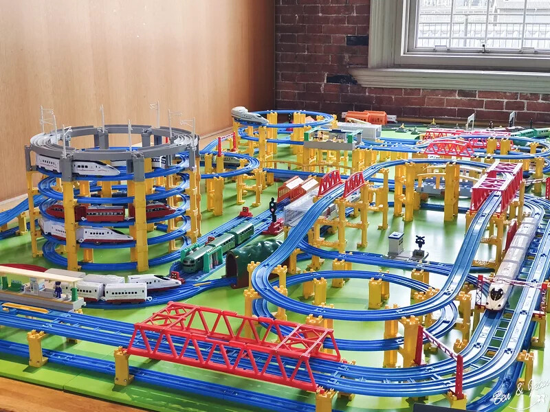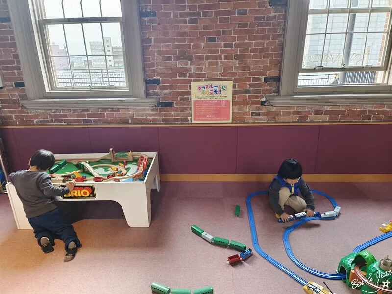 一旁是鐵路模型玩具區,小孩可以玩的很開心