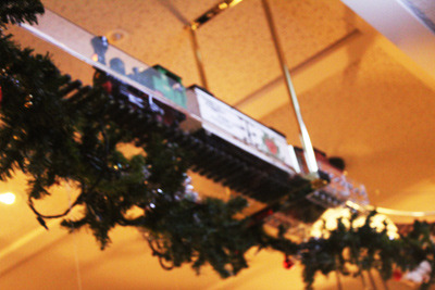 他們餐廳招牌就是入口的天花板有電動小火車會一直繞圈圈