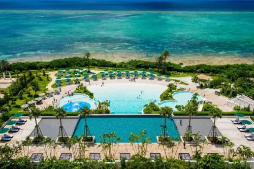 步行7分鐘即可抵達美麗海水族館的這間住宿是由在地知名的啤酒品牌所開設,因此入住旅客都可享用免費的風味酒品。走在飯店內幾乎各個角落都能看到海景,且每間客房都有專屬陽台;如果在房內看不過癮,還可以在內部的海景游泳池與SPA水療池中放空眺望,也可以步行到沙灘上,沖繩翡翠海灘就位在飯店正前方。