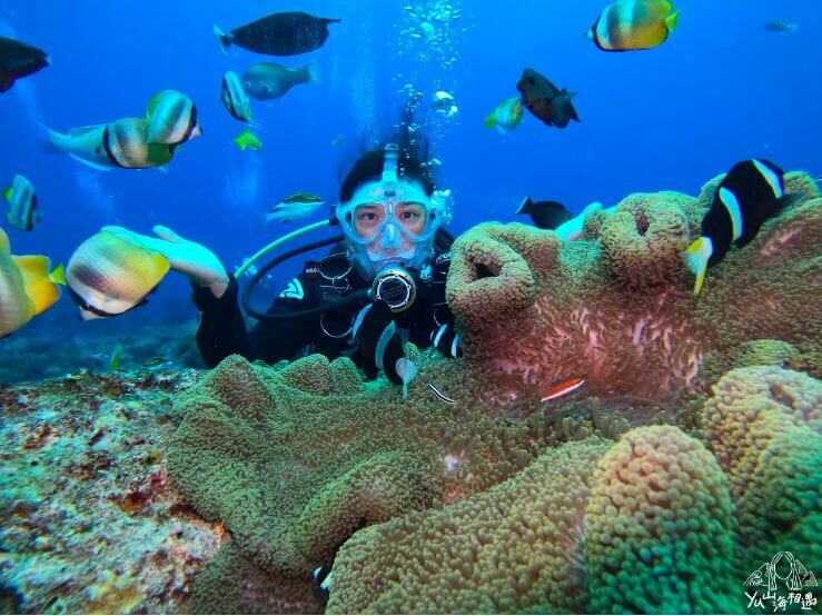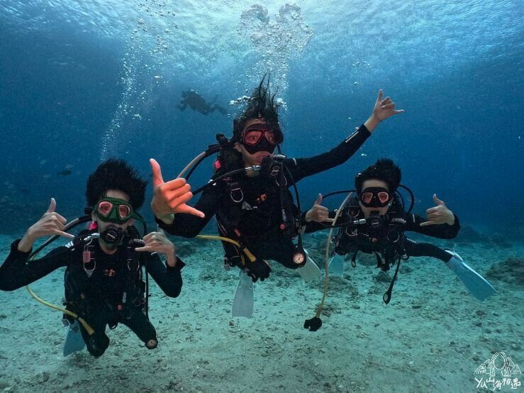身為世界級的潛點,綠島有很多專業的潛店,我們這次來到估狗評論五顆星的「海島旅人」,教練都很專業又好相處,推一個!後來發現這裡也有住宿,下次來綠島又多一個住宿選擇了。