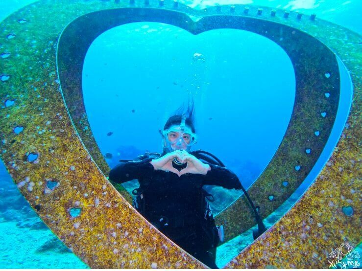 海馬郵筒旁邊還有一個「海洋之心」人工魚礁,可以從中間游過去~拍起來也是很美喔!
