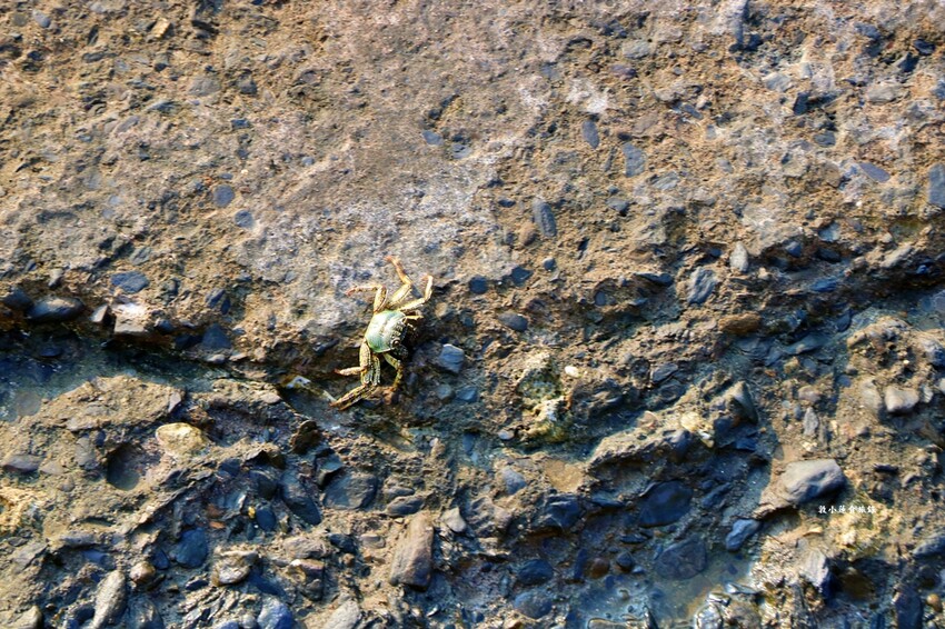 我是拉長鏡頭拍攝,但這隻小螃蟹還是很驚恐的連忙爬走,深怕人類去捉它