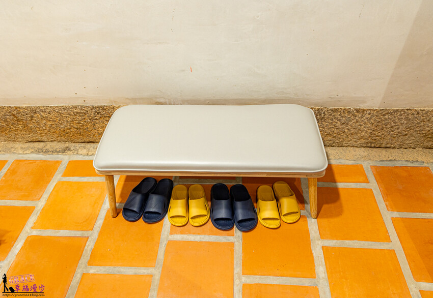 市內拖鞋擺放在此處,備有小凳子方便住客穿脫鞋子。