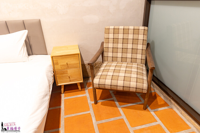 一旁的小沙發椅可以讓住客坐在這裡休憩。