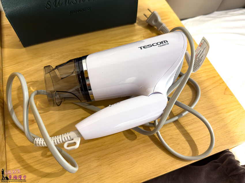 吹風機就放在桌子的抽屜裡,吹風機是我入住民宿很在意的地方,尤其很不喜歡掛在牆壁上要一直按著的吹風機,壹樓文旅所使用的吹風機是TESCOM的吹風機,有負離子速乾的功能,女生的頭髮比較長,可以讓我們好好整理頭髮的吹風機很重要啊!