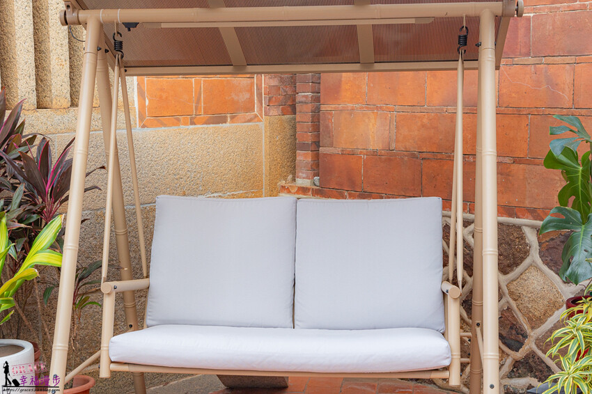在前庭的角落裡有放置著遮陽搖椅,這個區域也是我很喜歡的地方,坐在這裡擺動著椅子享受著微風吹拂,所謂歲月靜好就是如此啊!